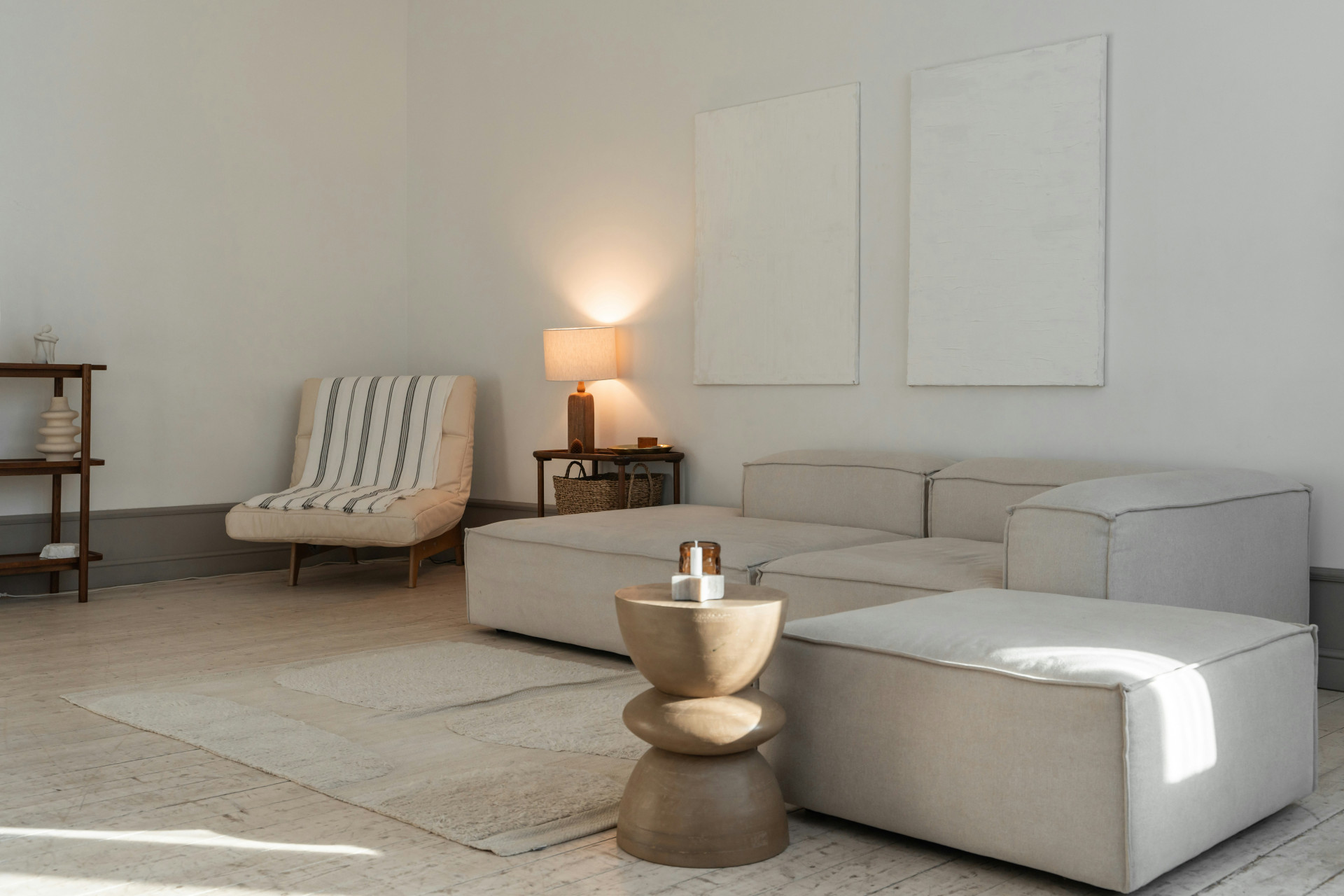 Selv i små stuer kan du skabe fornemmelsen af flere rum ved hjælp af tæpper, belysning og små sideborde. Et tæppe under sofaen definerer et “opholdsområde”, mens en lampe i hjørnet kan skabe en læsekrog. På den måde får du flere funktioner ud af det samme møbel.